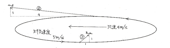 風は空気のかたまりの移動ですから、タンカーの原油タンクに入っている空気の移動も狭い地域の風と考えてよい訳です。したがって風速4メートルの地上での飛行経路もAからCになります。このタンクの中の飛行である限り飛行機が右向き(風上)に飛ぼうが左向き(風下)に飛ぼうが飛び方に差がある筈がありません。