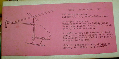 棚からPenniヘリコプターキットがで出て来ました。10数年まえに多分Peck