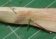 文房具屋に売っている最近の虫ピンは立派過ぎて鋼に近い硬さですが、これよりも100円ショップの安価な虫ピンが加工は容易です。