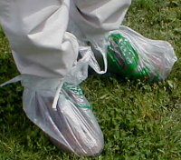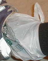 番外:レジ袋の意外な使途、それはゴム長の代用です。あまりかっこ良くはありませんが、草地では十分にゴム長の代用になります。お試しください。