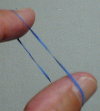 細い風船ゴムはDTの火縄固定に最適。幅1mm程度に切ります。装着前に図の様に指で広げると機体に無理がかかりません。左の太目の風船ゴムは同じく1mm幅に切ると主翼や水平尾翼の固定に使って便利です。